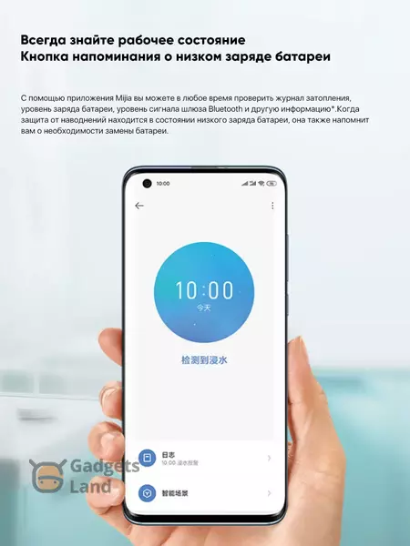 Сигнал от датчика поступает сначала на блок управления умным домом Smart Home Gateway 3, которое передает сообщение на смартфон. Специальное приложение Mihom для этого легко устанавливается на мобильное устройство. Для передачи сигнала используется Bluetooth 5.0. Радиус действия сигнала составляет 30 м.